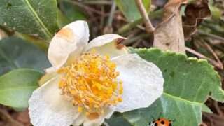 みちくさ図鑑 チャノキ ツバキに似た花を咲かせます。茶畑の地図記号はこの実を表しているそうです。