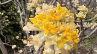 みちくさずかん for Kids ミツマタ 3月から4月に花が咲いています。枝が、かならず三つに分かれるから三叉(ミツマタ)です。花の色が違うものもあります。