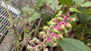 ヨウシュヤマゴボウ ブドウのような実ができますが毒草です。食べちゃだめです。