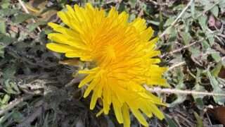 みちくさずかん for Kids セイヨウタンポポ 2026年3月1日に咲いていました。花の付け根(総苞片(そうがくへん))がそり返っているのがセイヨウタンポポです。