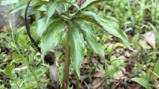 みちくさずかん for Kids ウラシマソウ 春に仏炎苞を咲かせます。マムシグサとちがって花は葉より下に咲かせます。